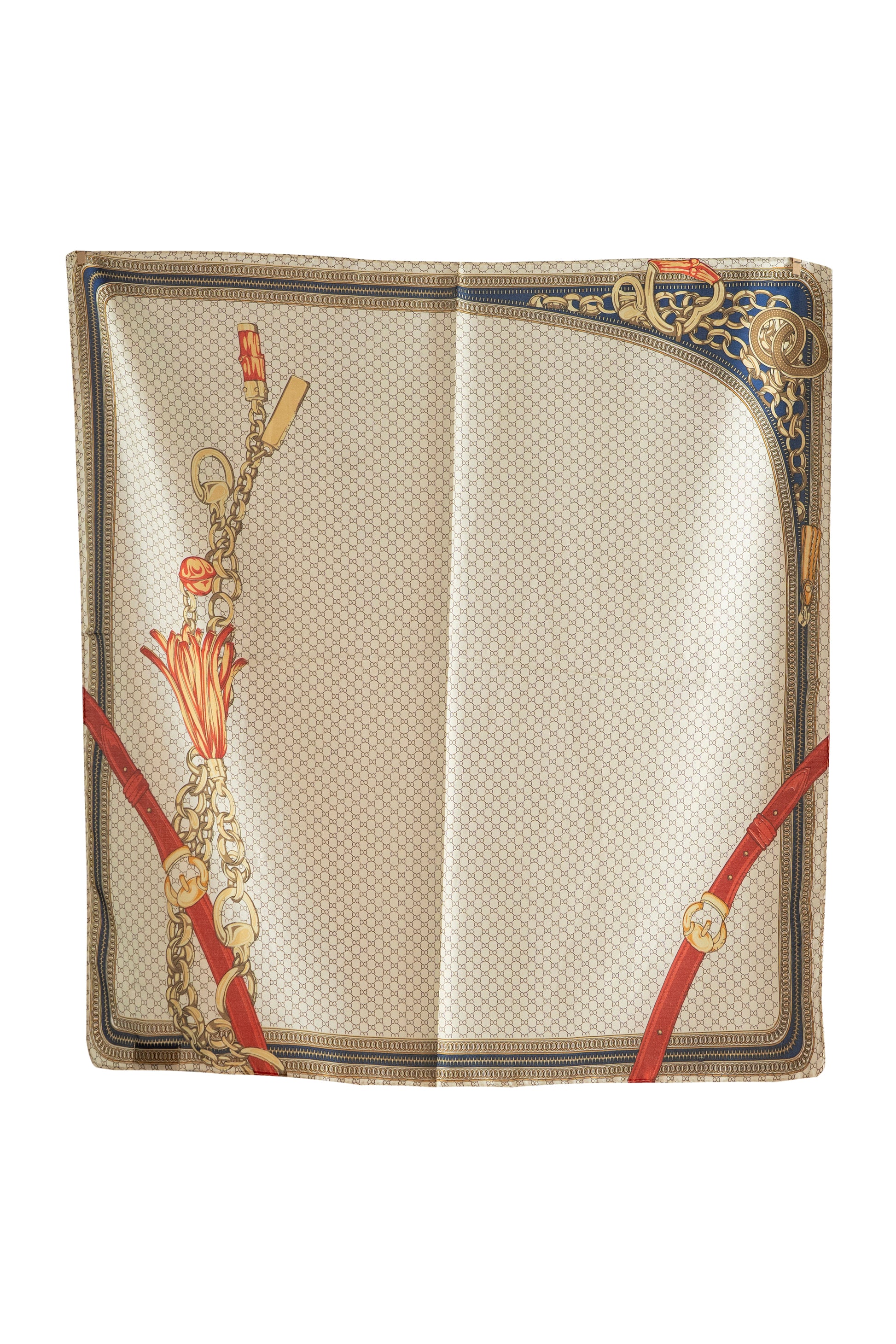 ✨ A refined silk scarf showcasing an elegant chain and belt design on a soft beige base, highlighted with bold red accents and a classic framed border. Chain Rouge brings a subtle statement and timeless sophistication to everyday styling.