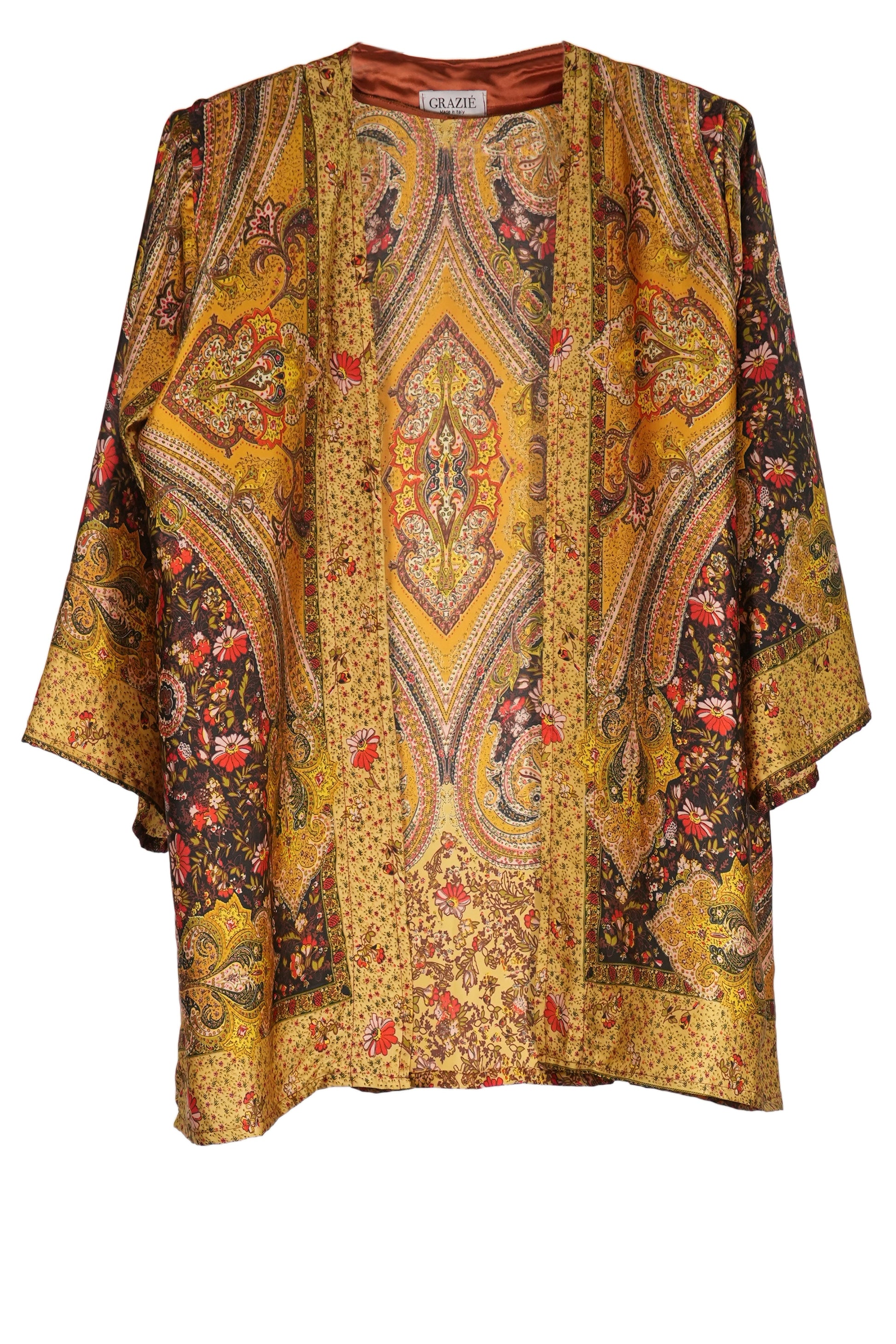Color: Warm saffron tones blended with mustard, amber, and bronze