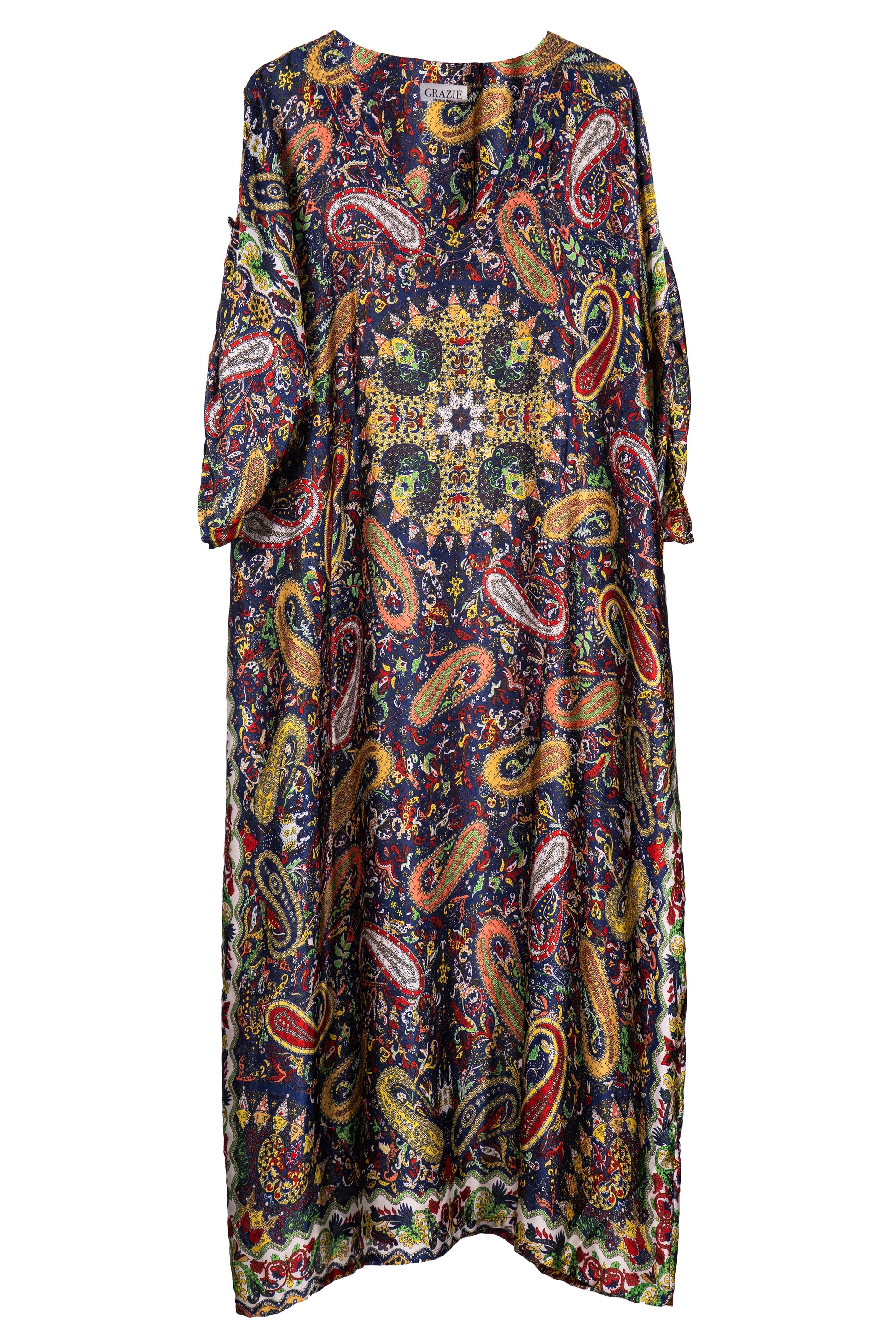 - Design: Rich multicolor paisley design with purple, gold, and deep tones
